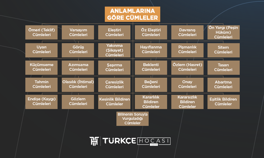 Taşıdığı anlama göre cümleleri otuz bir başlık altında inceleyebiliriz: